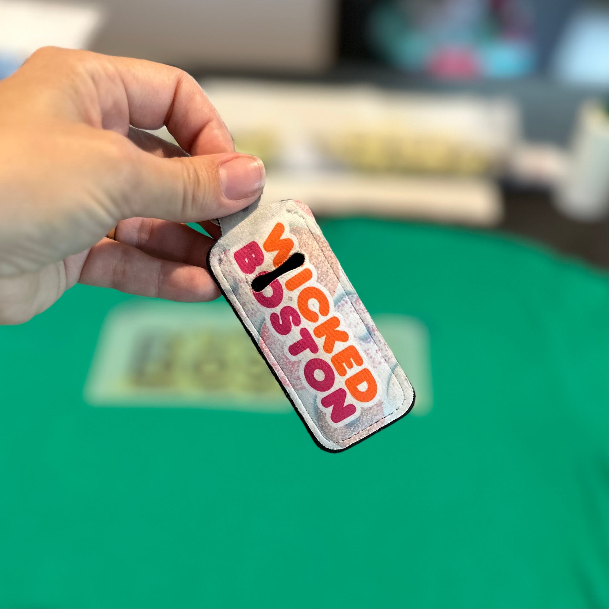 Keep your lips soft and moisturized on-the-go with the Wicked Boston Lip Balm Keychain. This convenient holder doubles as a keychain, perfect for those busy days. With a sleek design in iconic Dunkin colors, this keychain is both functional and stylish. Don't leave the house without it!