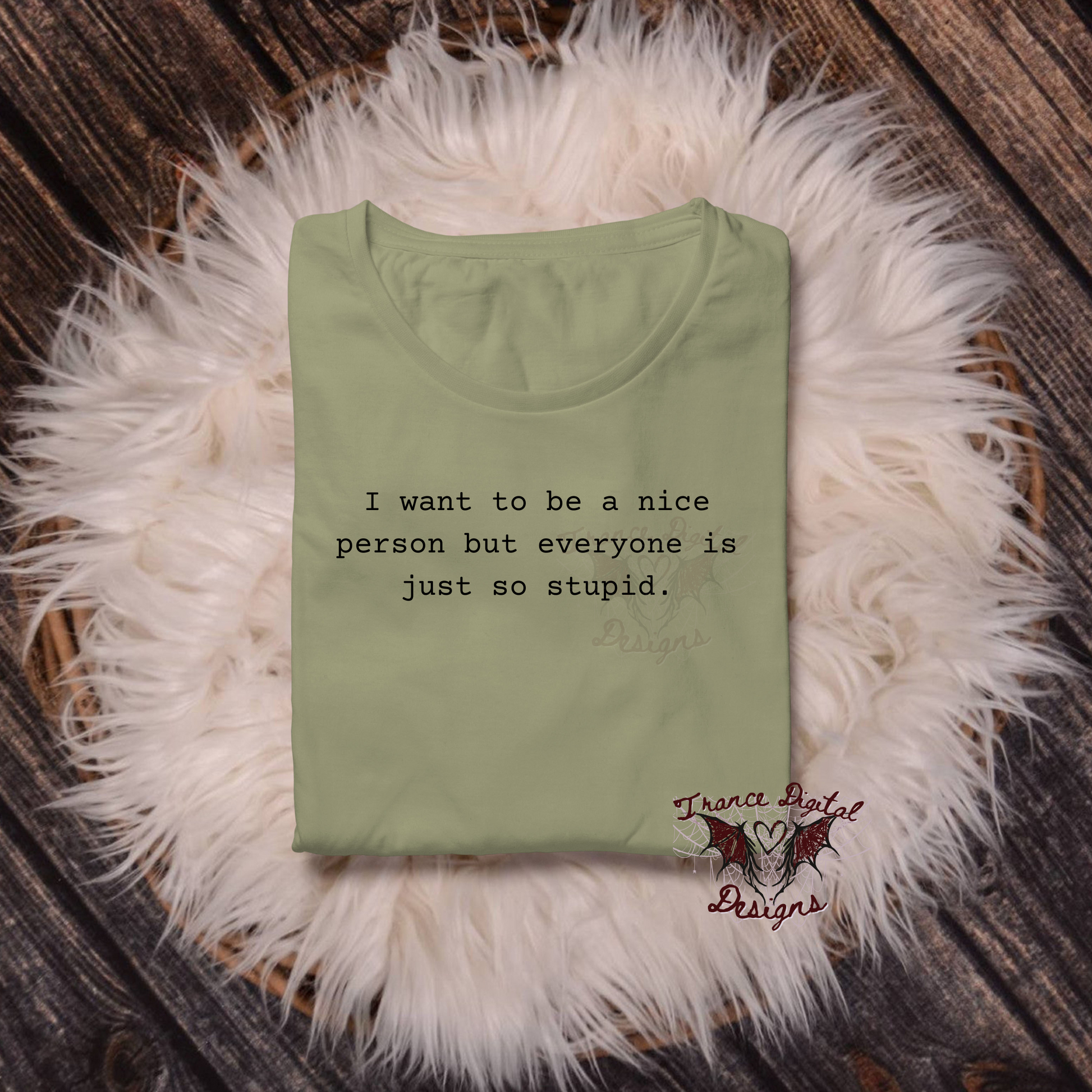 Embrace your inner nice person (despite the stupidity of others) with our I Want to Be a Nice Person Tee! Made with a soft cotton blend in army green, this funny shirt is perfect for spreading joy and laughter. Don't let the idiots get you down - wear our tee and stay true to yourself.